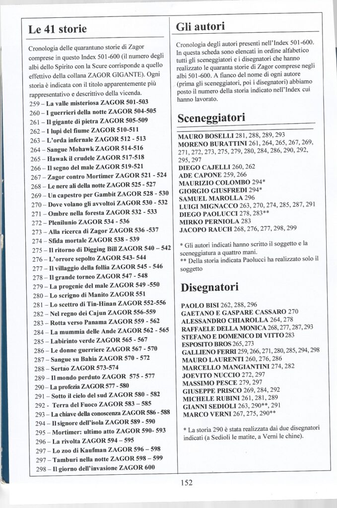 Zagor Index Illustrato 501/600